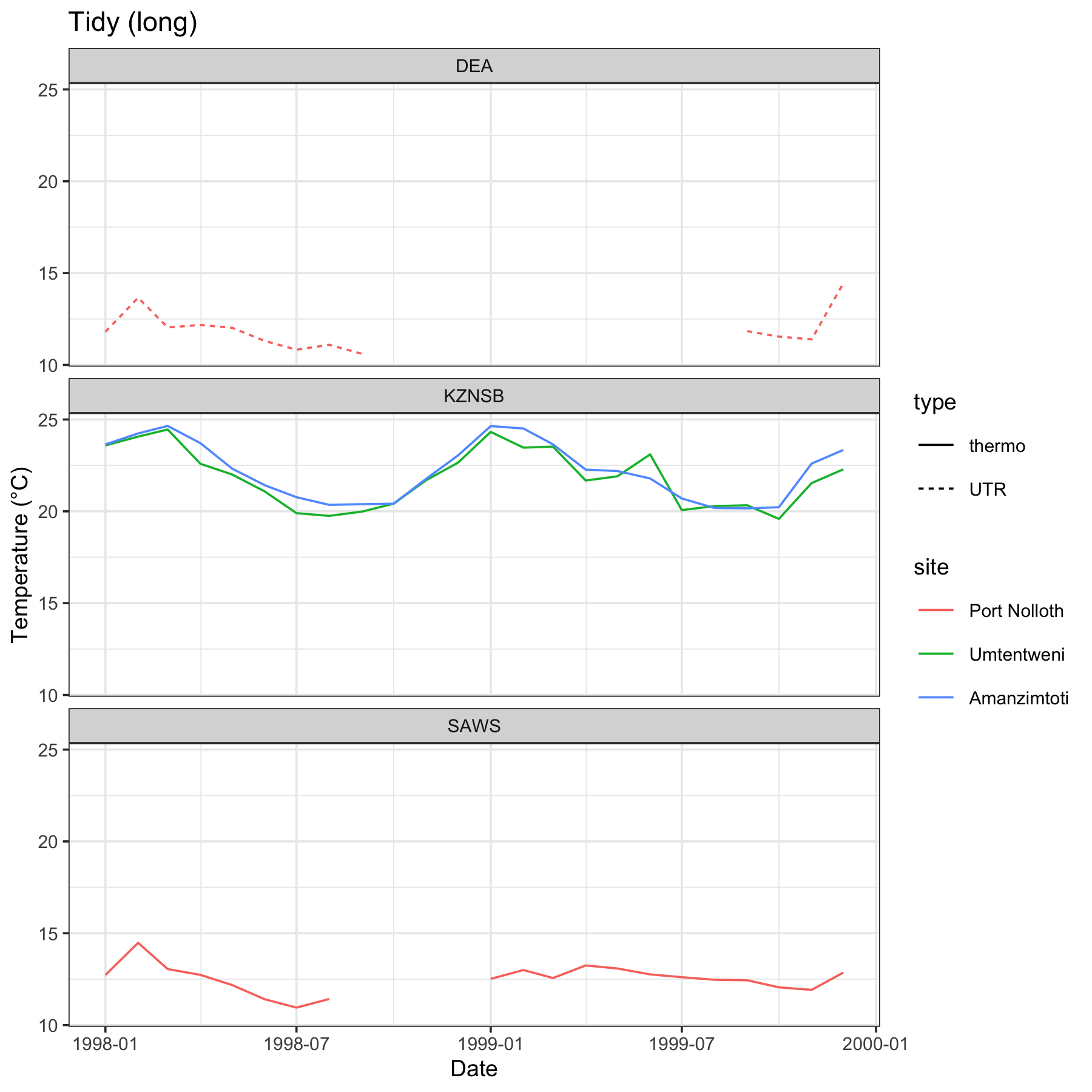 pivot_longer(cols = c("DEA", "KZNSB", "SAWS"), names_to = "src", values_to = "temp") |>
