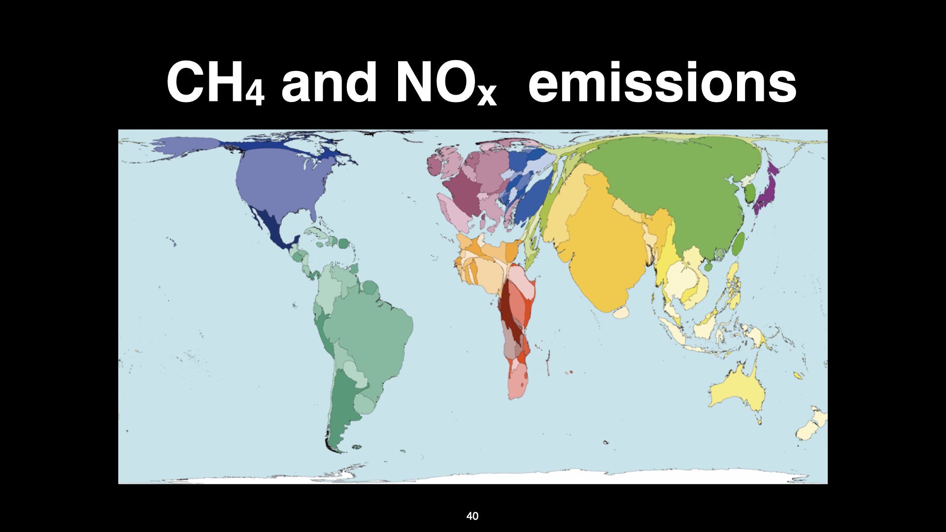 Looking at global patterns, Southeast Asia, South America, and China stand out for methane and nitrous oxide emissions. Livestock, mainly cattle, are the major methane source in South America. In Southeast Asia and China, the main sources are extensive rice farming (which under anaerobic conditions releases methane) and fertiliser use.